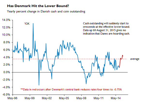 Consider that changes in currency in circulation is not equivalent to currency demand. You might be right about Denmark, or you could be horribly, horribly wrong. You cannot know which.